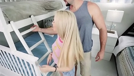 Petite pigtailed blonde riding big cock